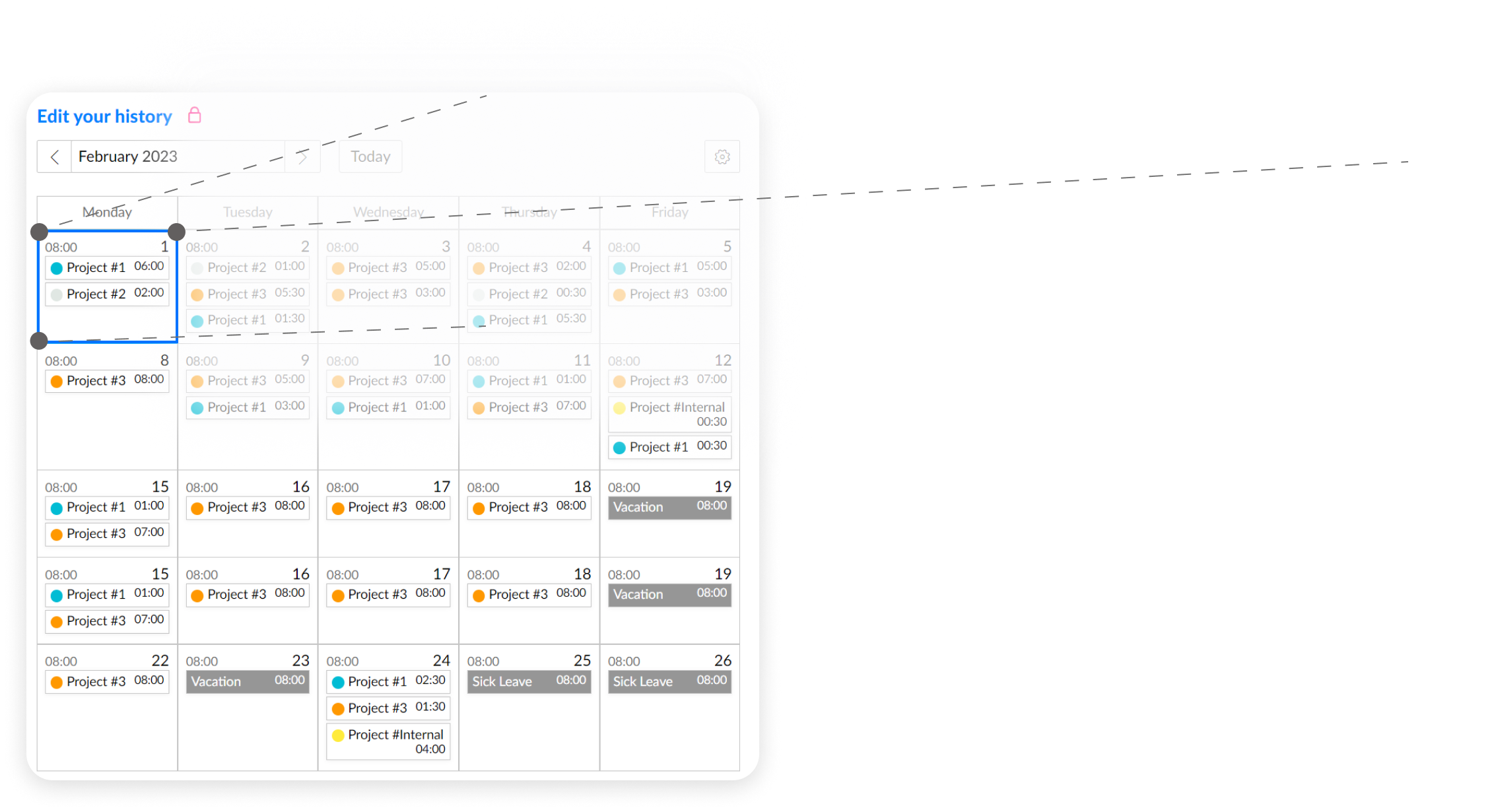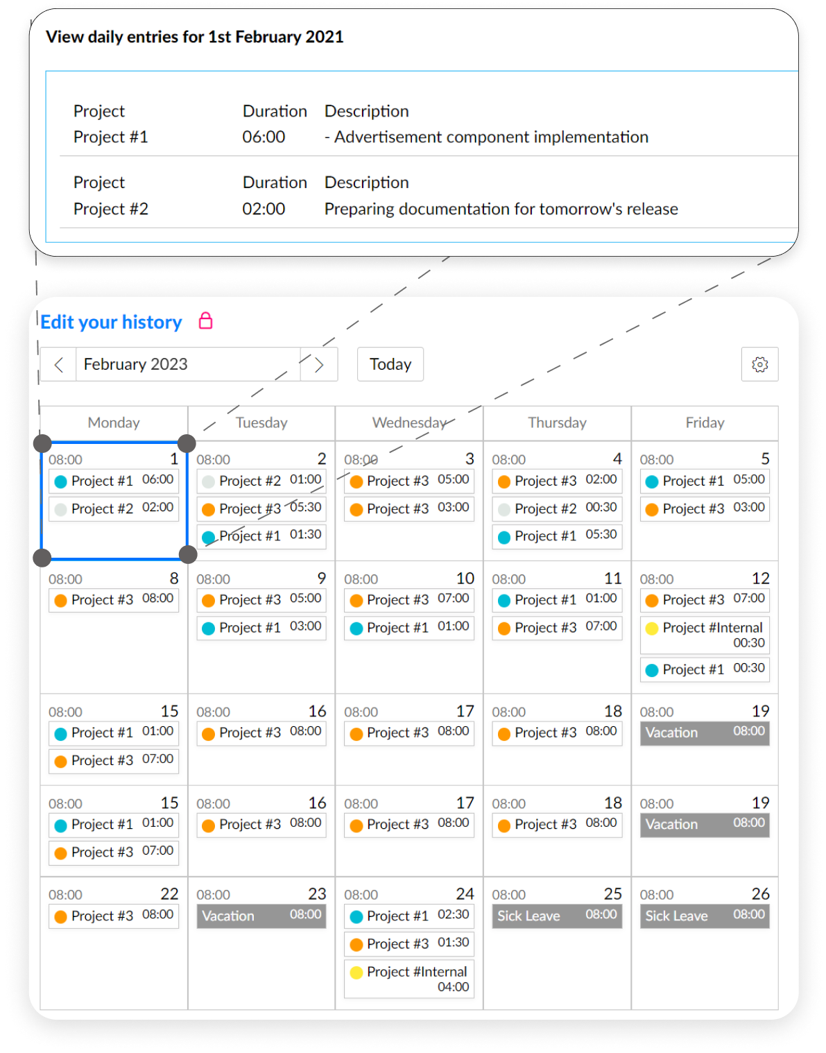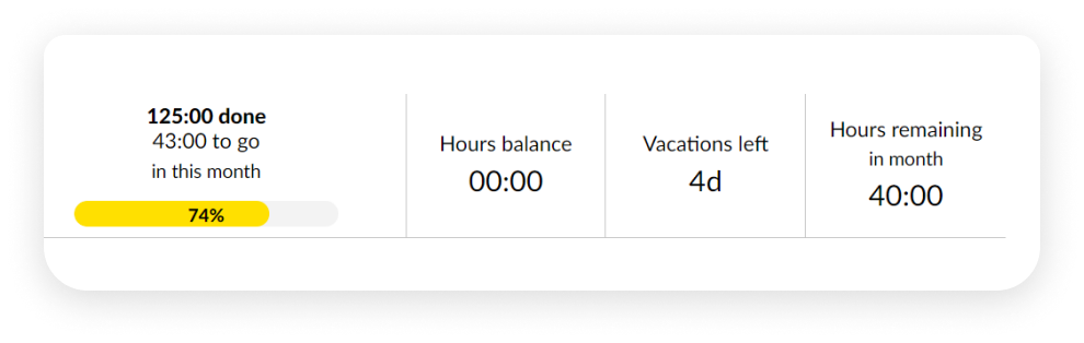 Essential information and responsive dashboard will let you fill up hours with no hassle.