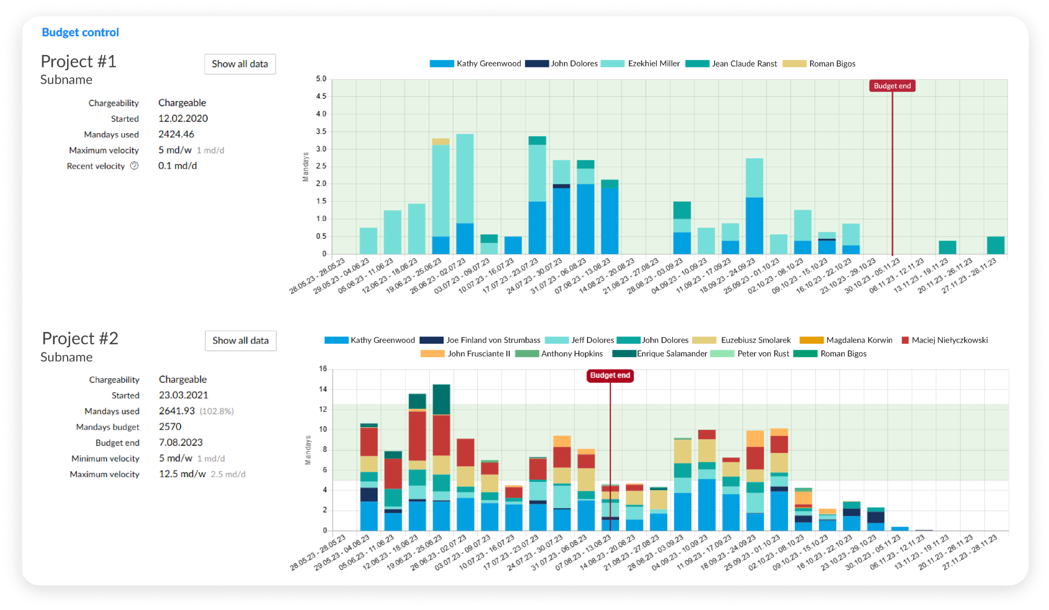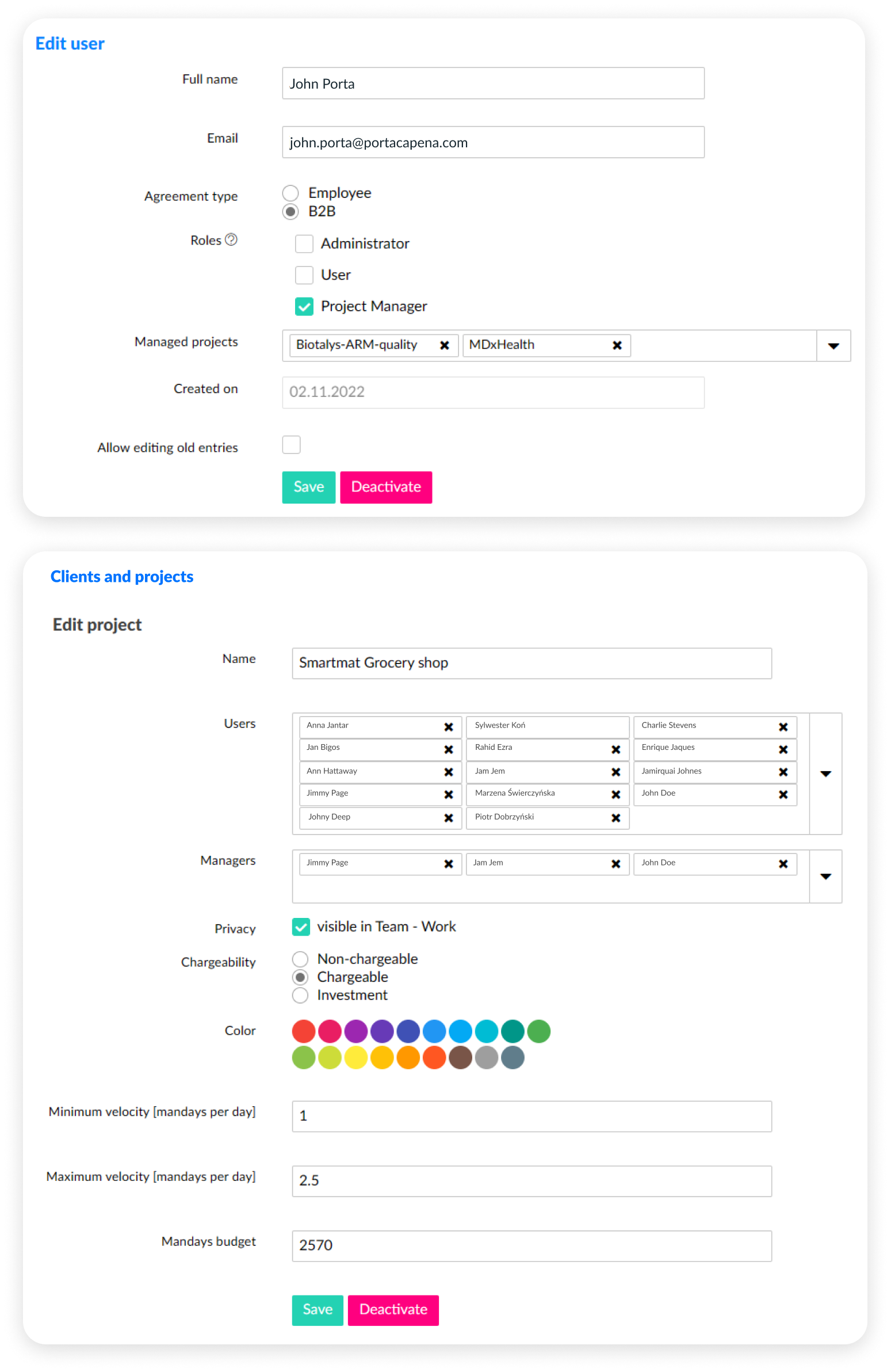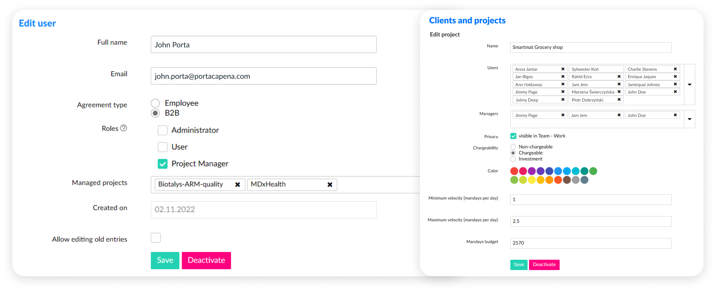 Two level management covers both single project managers and company wide admins. Settings of the project velocity and budget help in avoiding unwanted surprises.